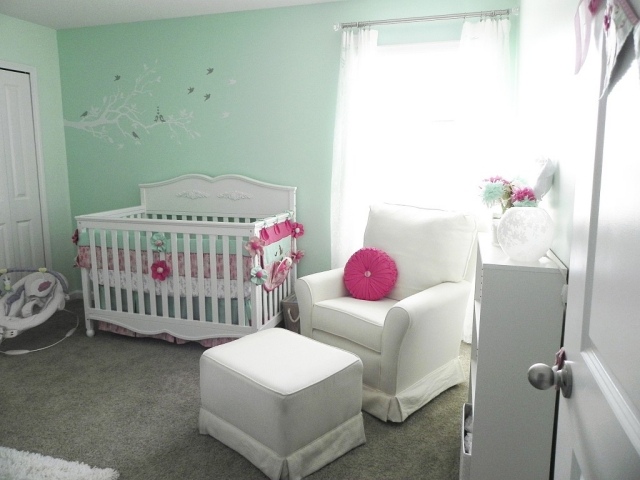 source de la photo : http://designmag.fr/chambre-enfant/nuances-vert-chambre-bebe-fille.html