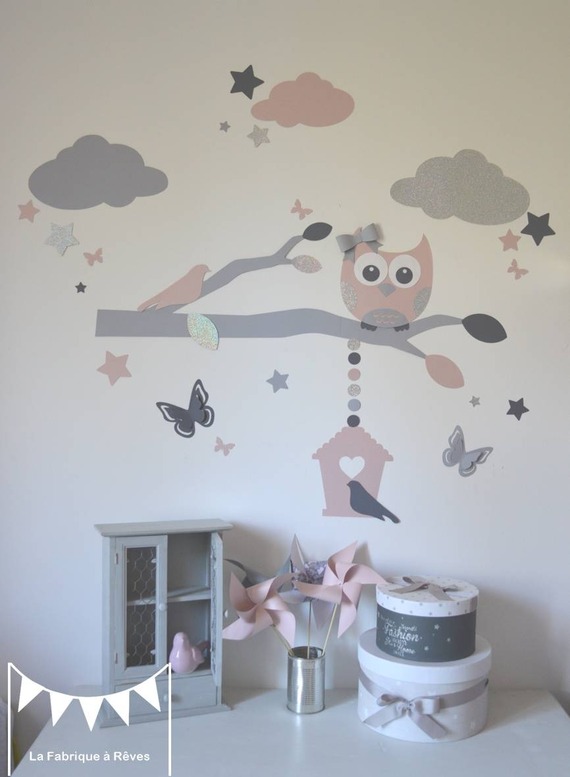 source de la photo : http://www.alittlemarket.com/decorations-murales/fr_stickers_chouette_branche_cage_a_oiseau_papillons_nuage_et_etoiles_rose_poudre_argent_gris_decoration_chambre_fille_-8406165.html